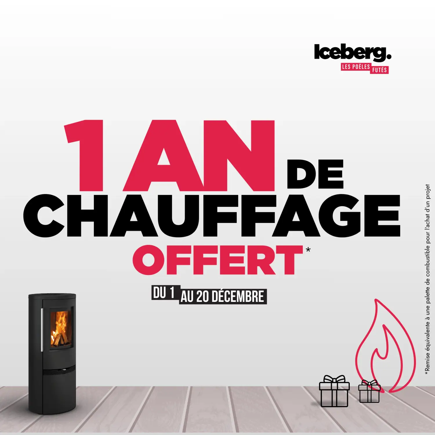 Pour tout projet signé avant le 20 décembre, Iceberg vous offre une palette de combustible si vous réalisez un projet de poêle à bois ou à granulés. Une manière concrète de vous remercier de votre confiance et de vous accompagner jusqu’au bout dans votre projet de chauffage.